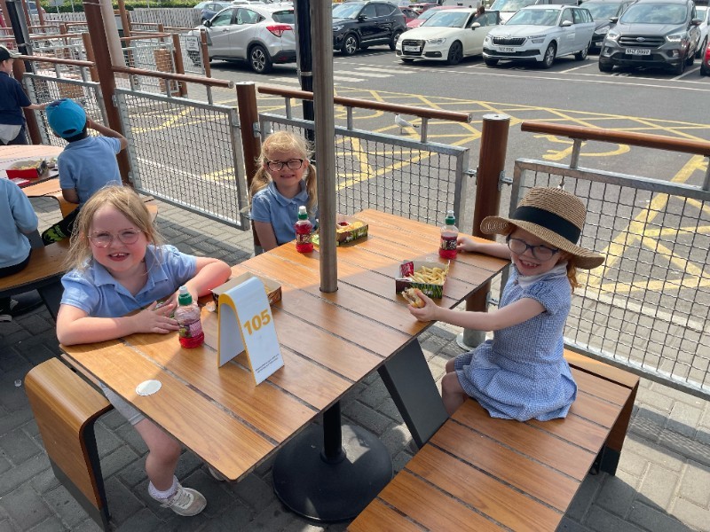 The children in Primary 1 had a fantastic day at the Lough Shore in Antrim today. It was the last of their Shared Education trips for this year. Everyone enjoyed a picnic break before going to play in the park. After that we learnt the story of how Finn McCool made Lough Neagh. The highlight was a trip to McDonalds for lunch. We were so proud of the children as several members of the public stopped to complement the children on their great behaviour and manners. Well done Primary 1!