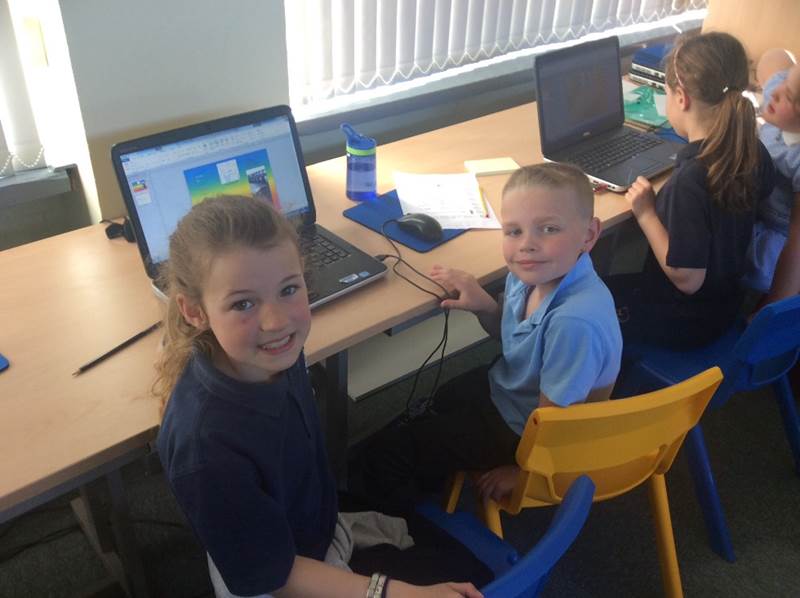 The Primary 5 children enjoy another Literacy session with Mt St Michael's children. Today the children were creating a child friendly brochure on Microsoft Publisher to promote the local area.