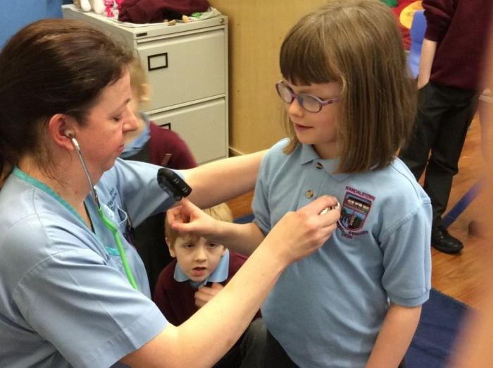 This week Mrs McNinch came to visit, she talked to us about her job as a nurse. In the role play area we used some real nurses equipment. We had great fun! Thank you Mrs McNinch